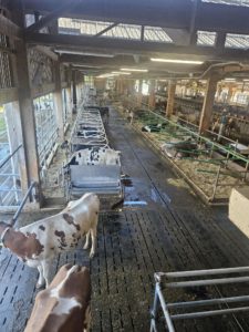 Für viele kleine Bauern lohnt es sich nicht mehr, Milch zu verkaufen, weil man nur noch im Durchschnitt 75 Rappen pro Liter bekommt. Eine Kuh gibt 20–25 Liter Milch pro Tag. Das bedeutet, dass ein Bauer mit 10 Kühen im Monat ca. 5000 Fr. bekommt, aber zusätzlich die Nahrung für die Kühe bezahlen muss und man die Ackerflächen für die Kühe pflegen muss, was auch noch zusätzlich Geld kostet. Aber es gibt auch grössere Bauern, die mehr als 50 Kühe haben, und die Kühe dann im Stall bleiben, weil sie Hochleistungskühe* sind, die bis zu 35 Liter Milch geben, und man durch das keine Ackerfläche braucht. Laut den Bauern ist das nur für das Wohl der Kühe, weil sie den Weg von der Weide bis zur Melkmaschine nicht ohne Schmerzen gehen können wegen der grossen Milchmenge. Im ersten Bild sieht man ein Euter das keine Milch drin hat und im Bild 2 wird es bald gemolken.