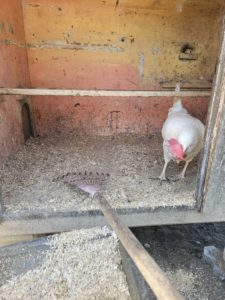 Den Hühnerstall habe ich auch sauber gemacht. Ich wurde streng beobachtet damit ich es auch richtig mache von den Hühner.