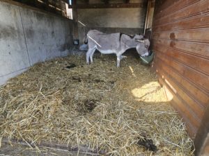 Die zwei Esel kamen auf den Hof, weil die Besitzerin des einen gestorben ist und der andere Esel krank war.