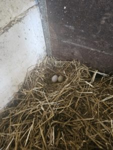 Wenn ich nichts zu tun hatte, habe ich Eier gesucht. Die Hühner liefen frei herum und versteckten ihre Eier an verrückten Stellen. (Bild 1 bei den Pferden, Bild 2 bei den Kaninchen)