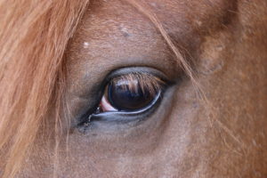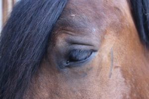 Pferde sind Weltmeister im Lesen von Körpersprache. Sie spüren ohne grosse Mühe, wie es einem geht, oft ohne, dass wir es merken. Beim Reiten tragen Pferde mehr als nur das Gewicht des Menschen, sie tragen dessen innere Lasten, die Sehnsucht nach Entspannung, den Wunsch, Sorgen und Belastungen für einen Moment hinter sich zu lassen. Oft geschieht das unbewusst, doch Pferde spüren es genau. Sie werden zum Spiegel unserer Gefühle, ohne dass wir immer wahrnehmen, wie sehr wir sie damit beeinflussen. Die Augen eines Pferdes verraten viel über sein Wohlbefinden. Falten oberhalb der Augen sind ein Zeichen für emotionale Anspannung, Stress oder Schmerzen. Sie spiegeln seinen emotionalen Zustand. (Bild 1 ist ein normales Auge.)