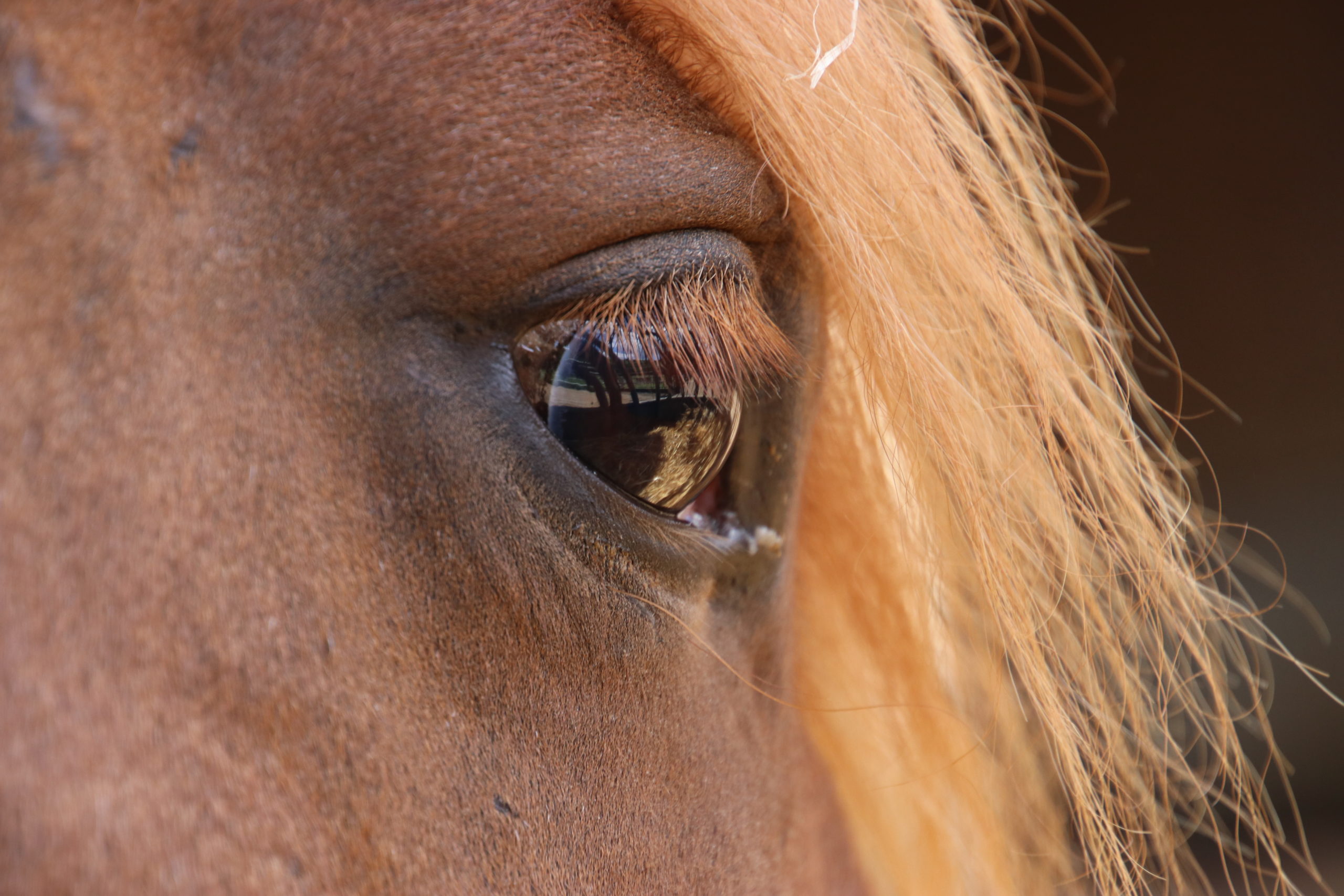 Pferde sind Weltmeister im Lesen von Körpersprache. Sie spüren ohne grosse Mühe, wie es einem geht, oft ohne, dass wir es merken. Beim Reiten tragen Pferde mehr als nur das Gewicht des Menschen, sie tragen dessen innere Lasten, die Sehnsucht nach Entspannung, den Wunsch, Sorgen und Belastungen für einen Moment hinter sich zu lassen. Oft geschieht das unbewusst, doch Pferde spüren es genau. Sie werden zum Spiegel unserer Gefühle, ohne dass wir immer wahrnehmen, wie sehr wir sie damit beeinflussen. Die Augen eines Pferdes verraten viel über sein Wohlbefinden. Falten oberhalb der Augen sind ein Zeichen für emotionale Anspannung, Stress oder Schmerzen. Sie spiegeln seinen emotionalen Zustand. (Bild 1 ist ein normales Auge.)